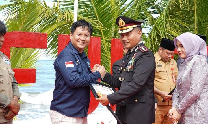 Pada Momentum tersebut, Kapolres Bolsel AKBP Kuntadi Budi Pranoto, S.I.K., menyerahkan langsung Penghargaan kepada Ketua PWI Bolsel Viko Karinda.