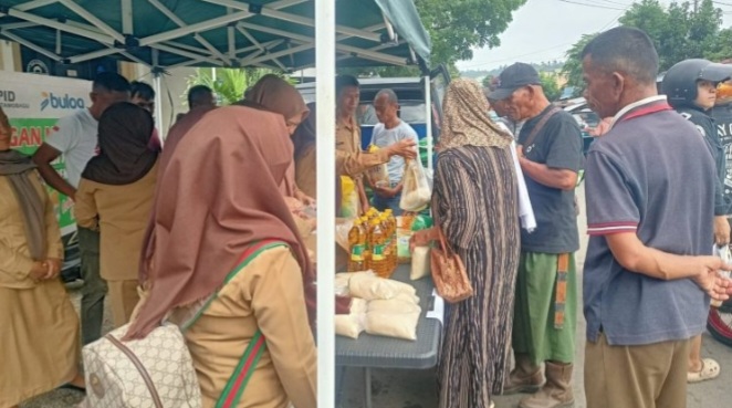 Gerakan Pangan Murah tersebut dilaksanakan di depan Kantor Kelurahan Gogagoman, bekerja sama dengan Bulog Cabang Bolaang Mongondow, Selasa 15 Juli 2025.