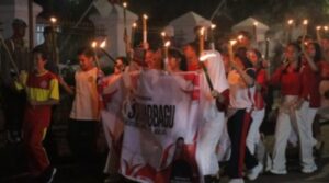 Pada kegiatan Pawai Obor yang berlangsung meriah tersebut, para peserta melewati sejumlah jalan utama sambil menyanyikan lagu-lagu Nasional.