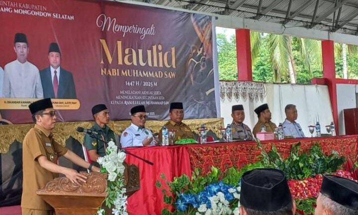TAGAR-NEWS.com, BOLSEL – Pemerintah Kabupaten Bolaang Mongondow Selatan (Bolsel) menggelar peringatan Maulid Nabi Muhammad SAW 1447 H di Lapangan Futsal Kompleks Perkantoran Panango, Senin 8 September 2025.