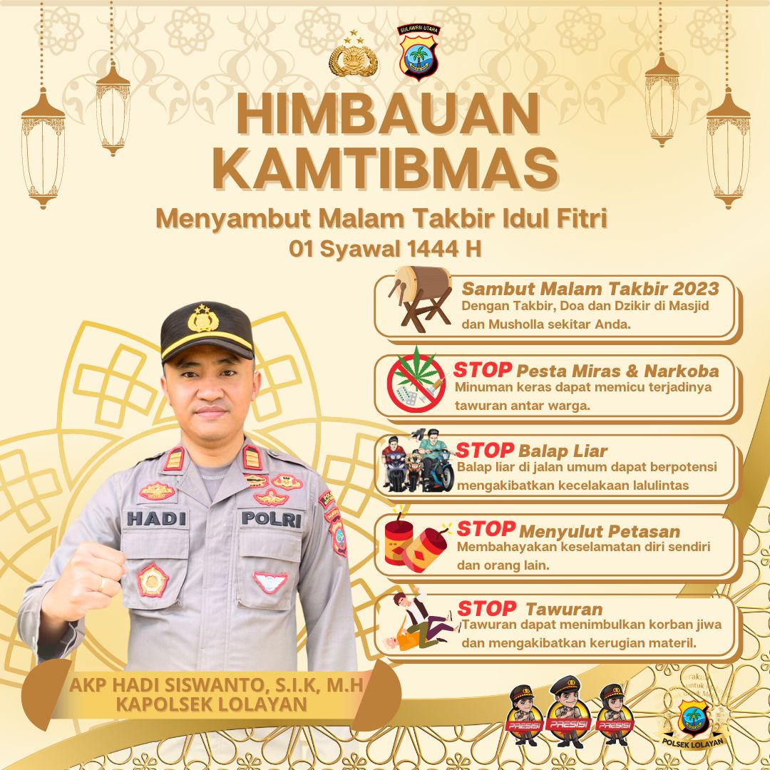Imbauan Kamtibmas Kapolsek Lolayan Menyambut Malam Takbir Idul Fitri 1 Syawal 1444 H